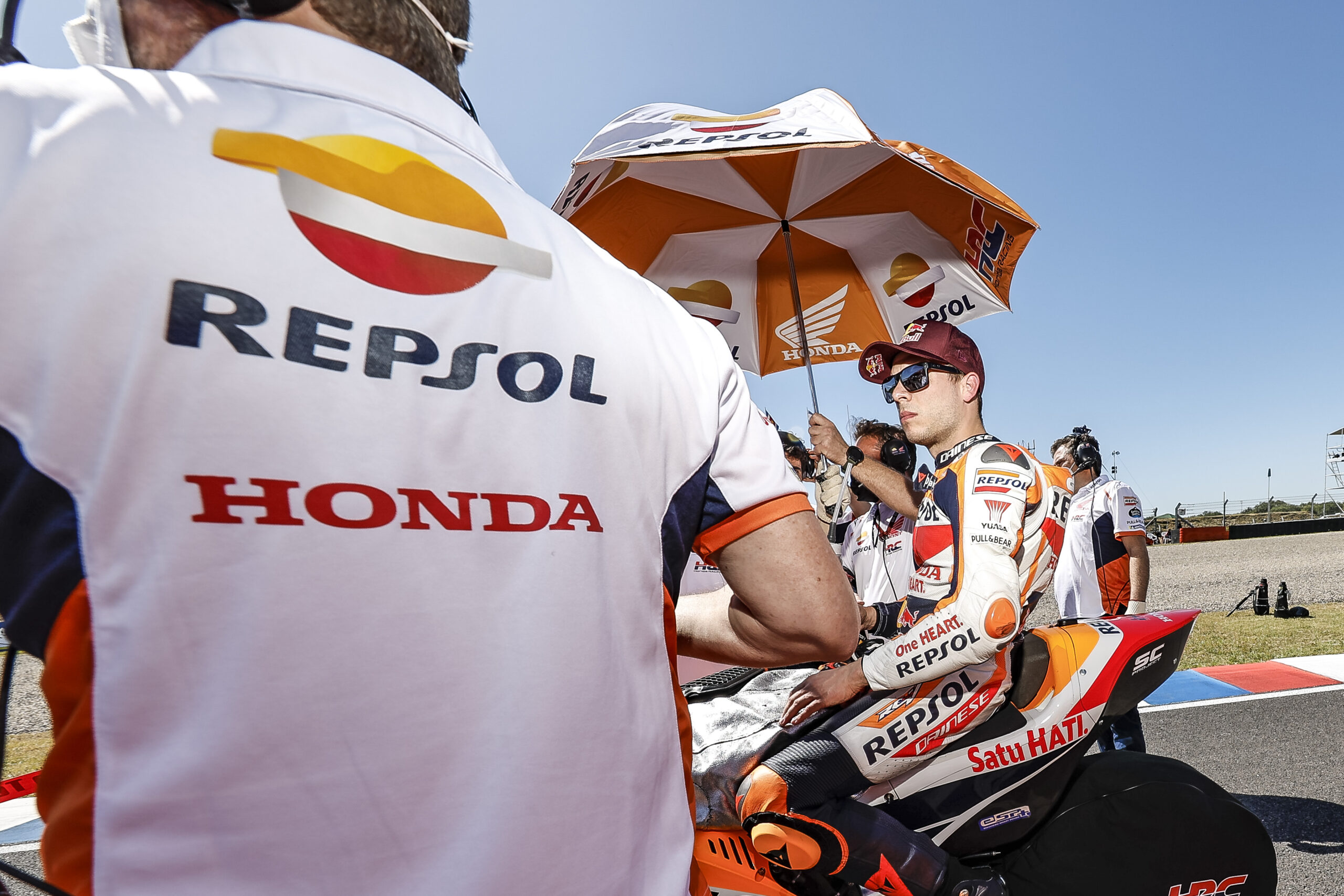 With eleven laps to go, the Repsol Honda Team rider crashes out of fourth place. Stefan Bradl takes the chequered flag nineteenth.