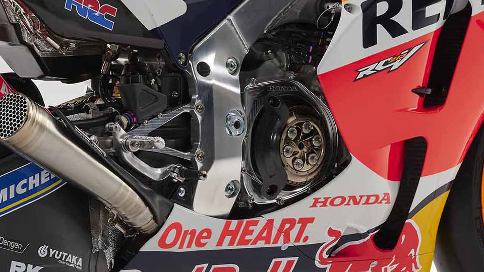 The RC213V, on the other hand, has a seamless gearbox, which, thanks to its ingenuous design and electronics, can upshift and downshift without the clutch and without releasing the accelerator. On these bikes, the clutch is only activated at the starting line.
