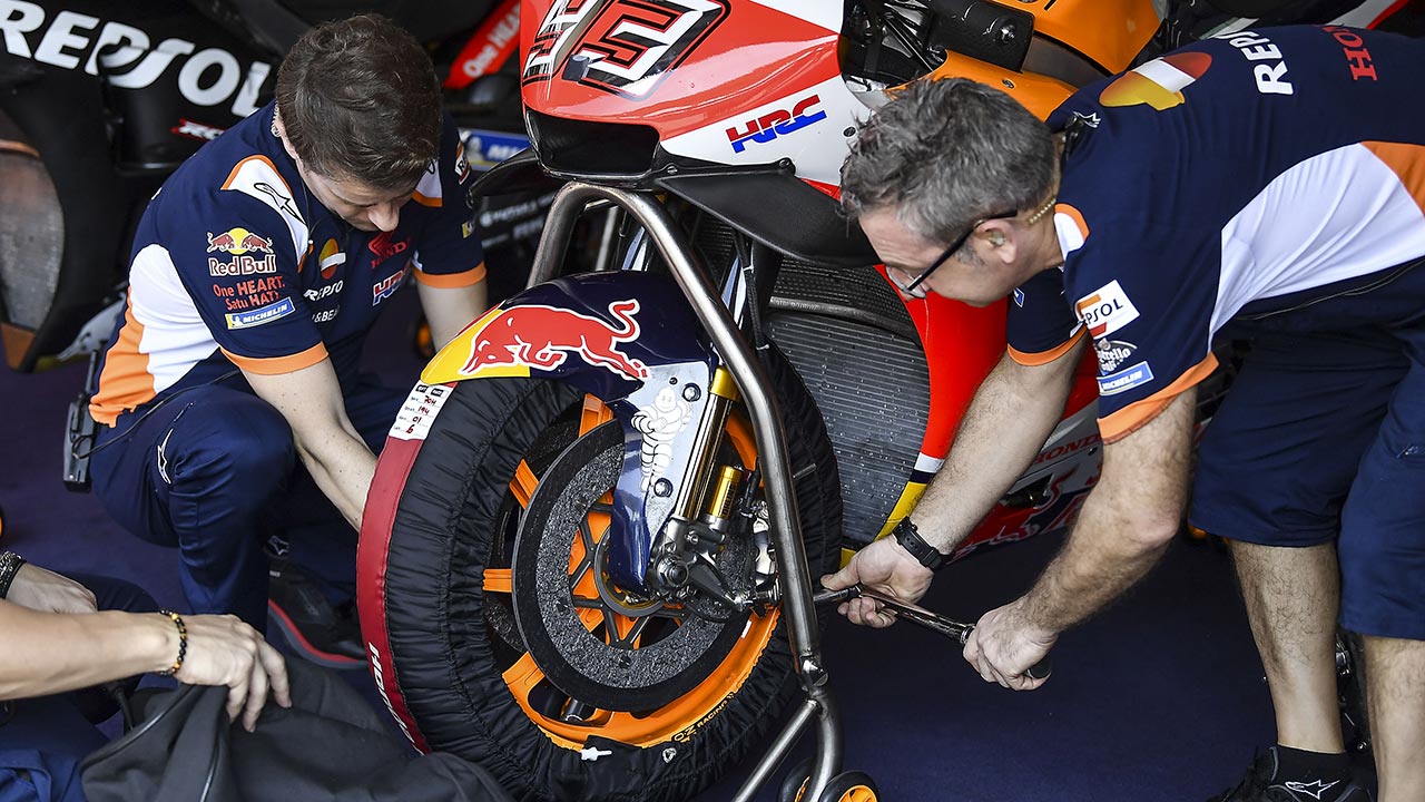 One of the biggest benefits of the modern carbon brakes installed in the RC213V is that they can be used in rainy and cold conditions, something that was unthinkable only a few years ago.