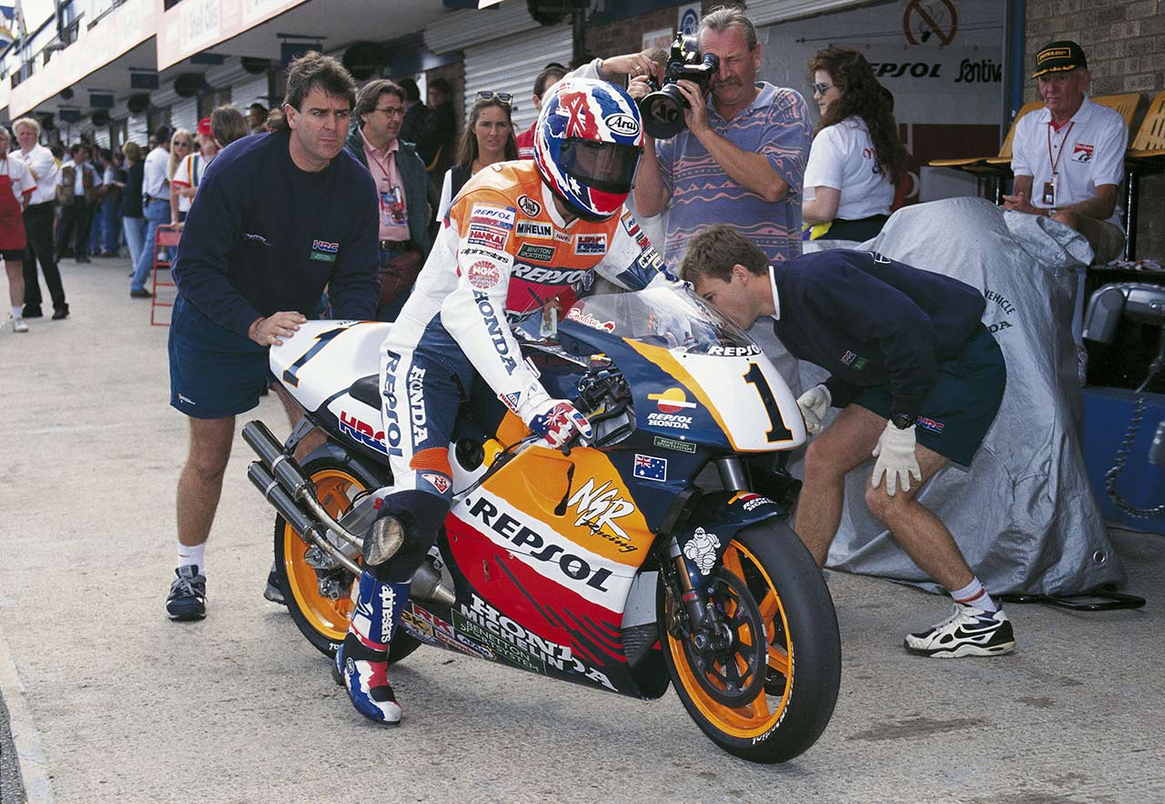 In 1995, when the Repsol Honda Team began racing in the top class, the bike rode by Mick Doohan, Àlex Crivillé, and Shinichi Ito was the Honda NSR500. Released in 1984, it was the direct descendent of the champion NS500. This bike garnered five World Championships with the team, four of them for Doohan and another for Crivillé.