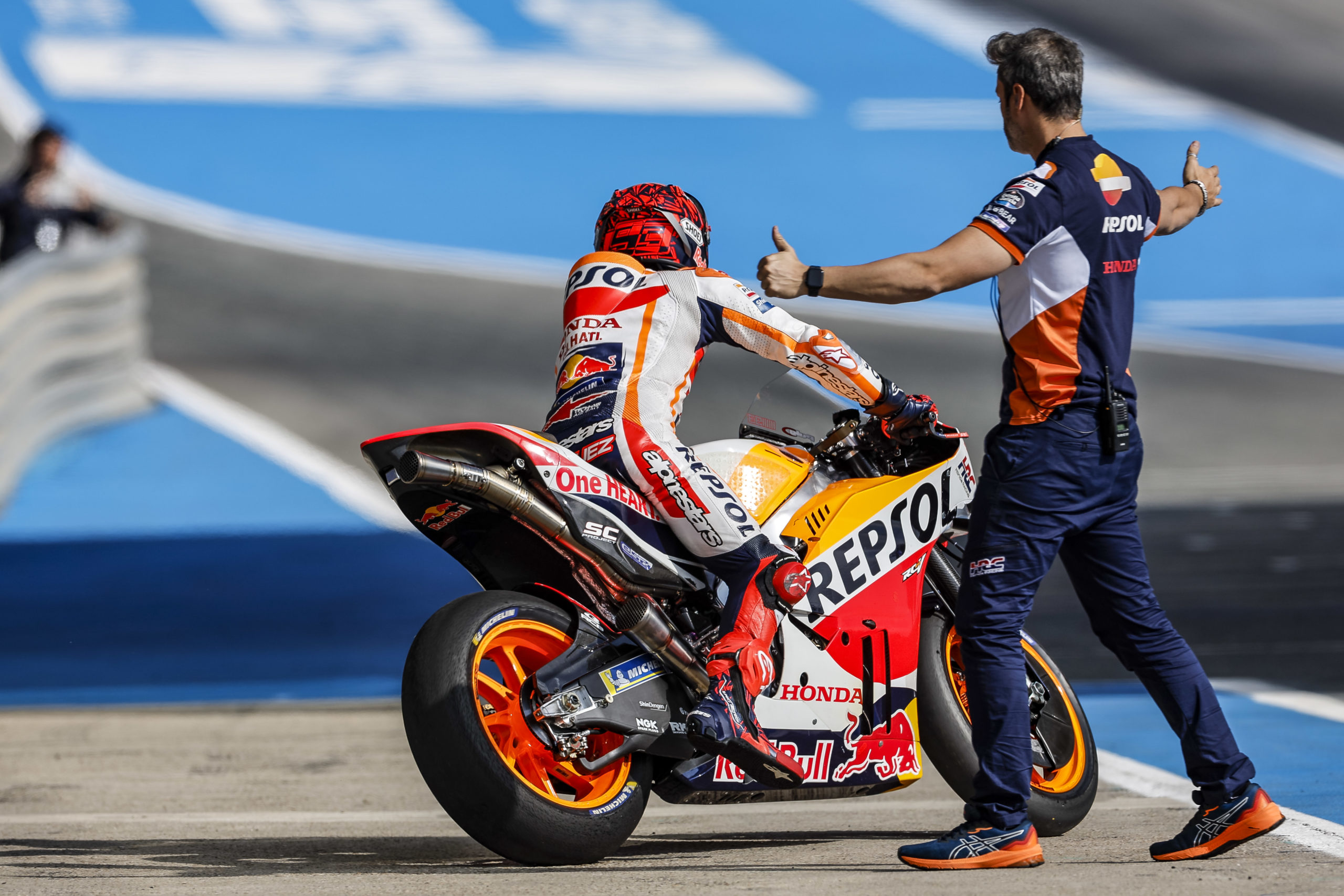 Marc Márquez’s day ended after 60 laps, the Repsol Honda Team rider splitting his time between three Honda machine as he explored a variety of settings on the bike. A best time of 1’37.940 had him as the 15th fastest rider of the day, though single-lap speed was far from the focus of the day. The work continues for the Repsol Honda Team rider and his team to return to running consistently at the front.