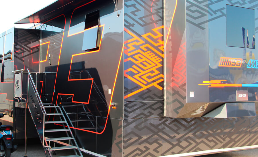 It is admittedly a demanding job, often requiring long journeys away from home: “The life of a motorhome driver is normally two to three weeks away from home every month, which involve driving, traveling, cleaning and maintaining the motorhome,” Juliá explained. “My life as a motorhome driver is exciting,” Joan tells us, “It may sound pretentious, but I feel lucky. Motorcycles have always been my passion, and when your passion becomes your job, well, you can imagine: it’s a dream come true. As for the work, nowadays these trucks are very new, automatic, easy to drive, very comfortable, and once you have the setup in your hands it isn’t complicated. You have to be careful because it has a lot of hydraulic parts and one mistake could cause a small disaster.“