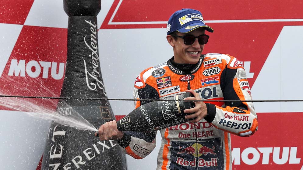 Repsol Honda Team rider achieves his seventh title, winning at the home of Honda after taking the lead and forcing a mistake from rival Dovizioso. His teammate, Dani Pedrosa, finishes eighth.