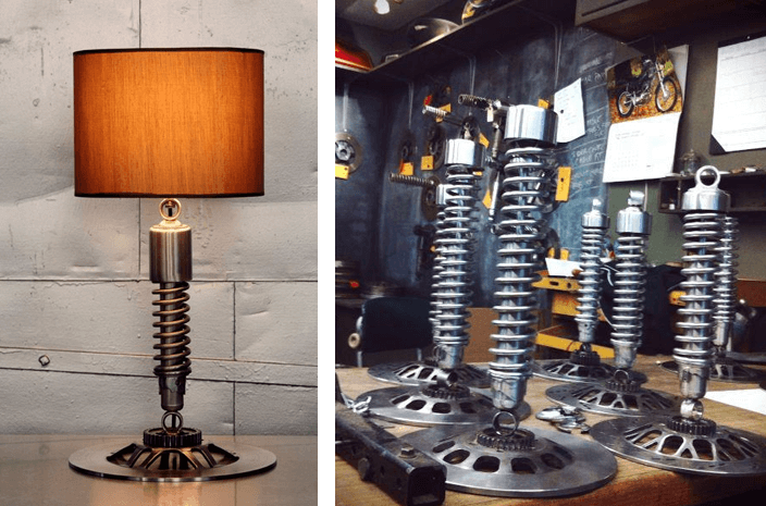 Studio Tin Man está en Israel. Hace todo tipo de muebles con partes de coche. Hace un mueble para un fregadero o lavabo con la parte delantera de un Volvo. Un escritorio con las dos puertas de un Lexus o una butaca con la parte trasera de una Vespa. Tiene un estilo muy moderno y limpio. Lo que más nos ha gustado es una lámpara de pie hecha con el depósito de una Honda. Es muy activo en Facebook y la web está muy bien.