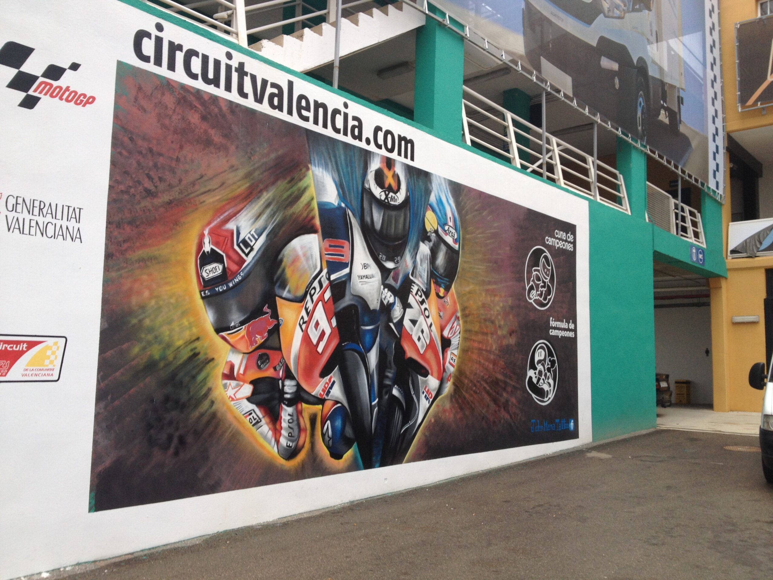 El Circuito de la Comunitat Valenciana también decoró hace unas temporadas una de sus paredes con un mural en honor a MotoGP con Marc y Dani: