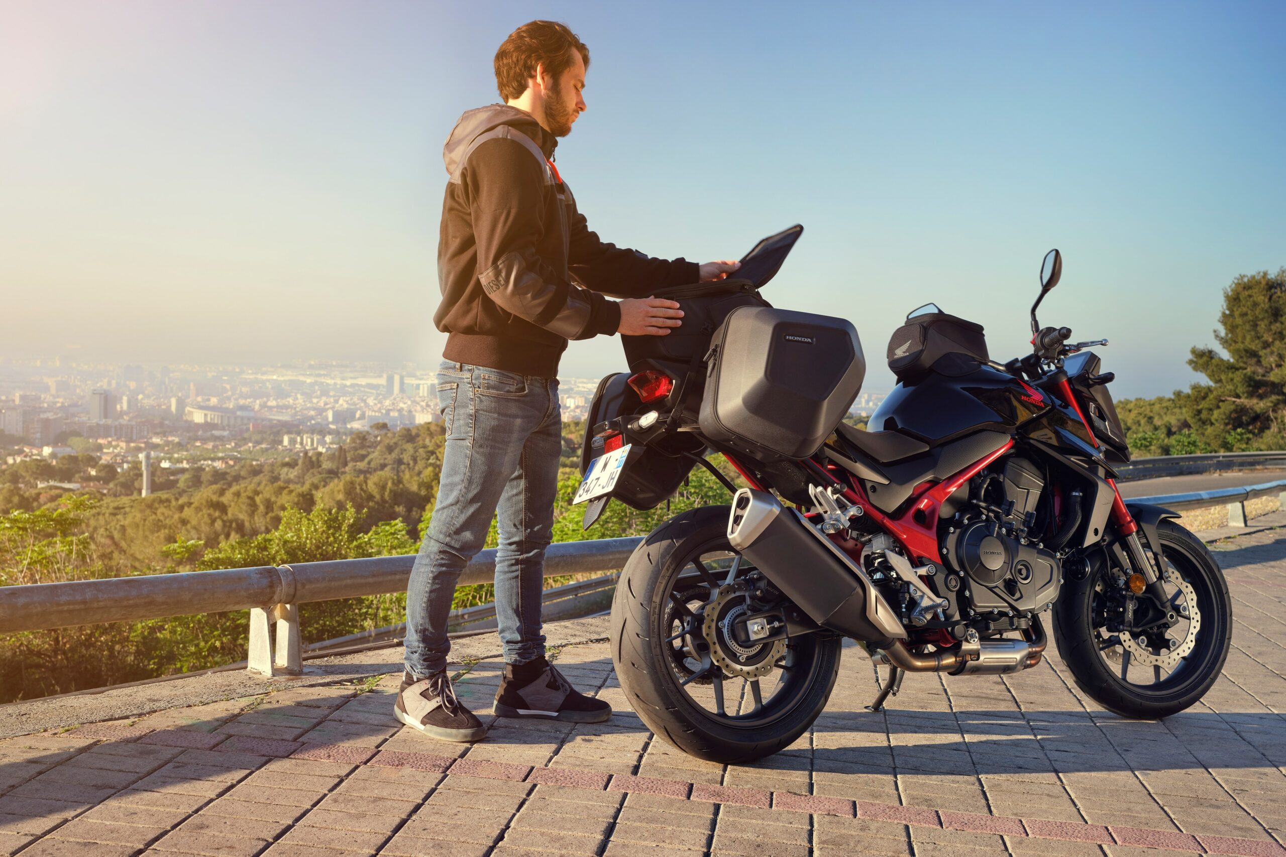 Por otro lado, la marca ha desarrollado una larga lista de accesorios para la moto opcionales para la CB750 Hornet que se pueden adquirir tanto por separado, como en tres paquetes denominados Sport, Style y Touring. El primero está compuesto por “quick shifter”, pantalla, tapa monoplaza y estribos de conductor. El segundo por contrapesos de manillar anodizados, brida de manillar de aluminio mecanizado, protector de depósito, bandas adhesivas para las llantas y topes anti caída. Y el tercero por maletas semirrígidas, bolsa sobredepósito, bolsa de asiento y adhesivo protector.