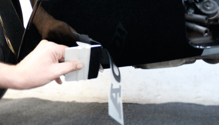 Una vez decidido el sitio donde vamos a colocar nuestro adhesivo lo posicionamos y con un trozo de cinta de carrocero lo fijamos provisionalmente por la parte central para comprobar si está donde queremos, de esta manera podemos tomar las medidas oportunas para recolocarlo a nuestro gusto.