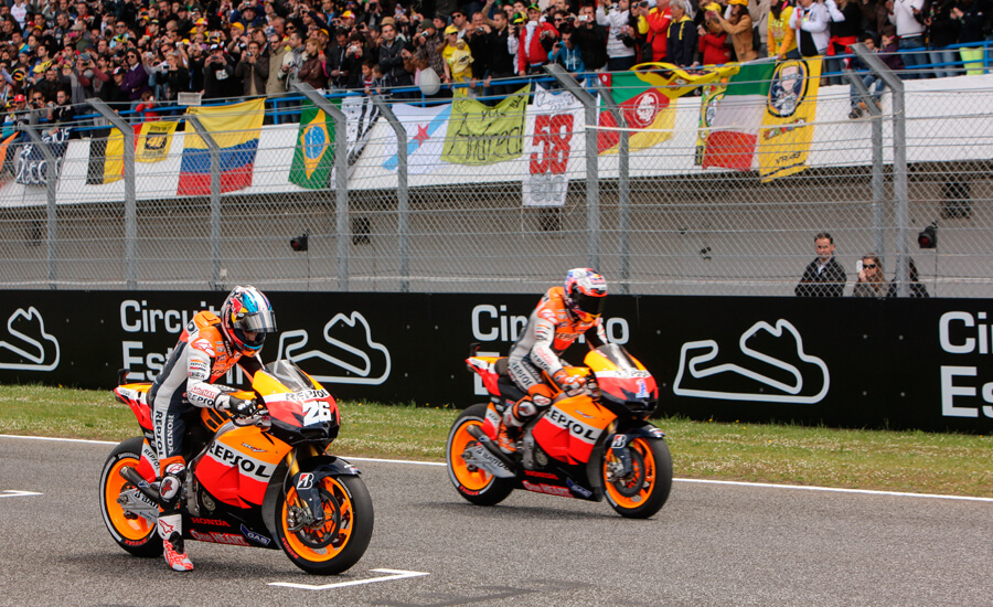 Stoner y Dani Pedrosa en el circuito de Estoril en 2012