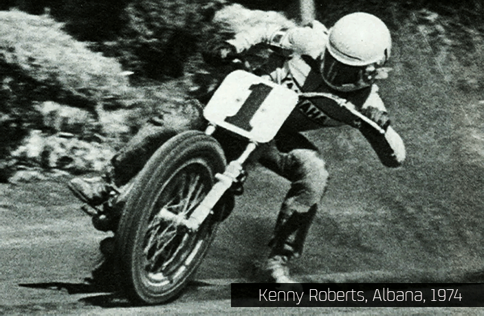 Ese estilo salvaje con la rodilla en contacto con el suelo llamó la atención de un consumado especialista en DirtTrack, el norteamericano Kenny Roberts, y lo puso en práctica en la velocidad como fórmula de supervivencia en la era de las potentísimas 500 cc con motores de dos tiempos.
