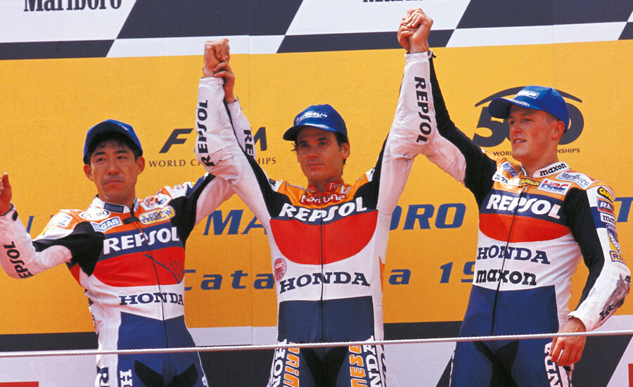 En 1994 le vimos dar un nuevo paso adelante en su evolución, siendo el primer español que formaba parte del equipo de fábrica de un fabricante japonés; y Honda, nada menos.