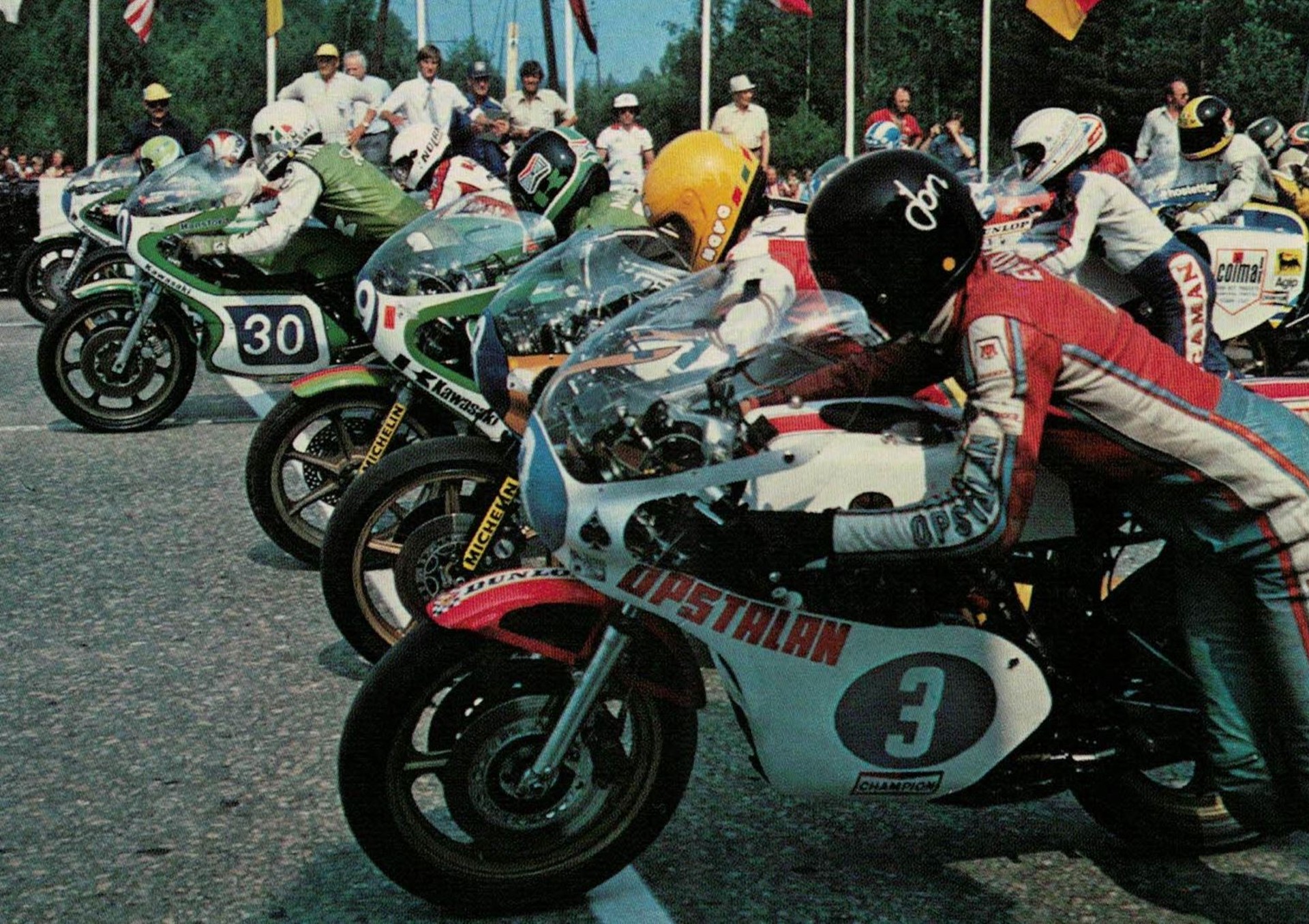 Hubo un tiempo, hasta hace 35 años, en que las motos se arrancaban en parado, con los motores apagados. A la señal del juez de carrera, un banderazo de salida y todos los pilotos empujaban afanosamente sus motos hasta que los motores cobraban vida, dando comienzo a la carrera.