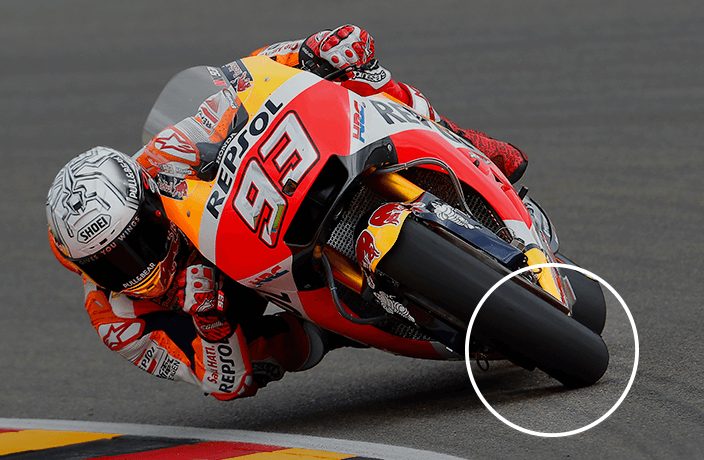 Efectivamente, al presionar sobre el manillar y apoyar el peso del cuerpo hacia el interior del viraje, haces que el neumático gire, (recuerda que el de una moto no tiene un perfil cuadrado como los coches, sino “redondo”) sobre su perfil interior.