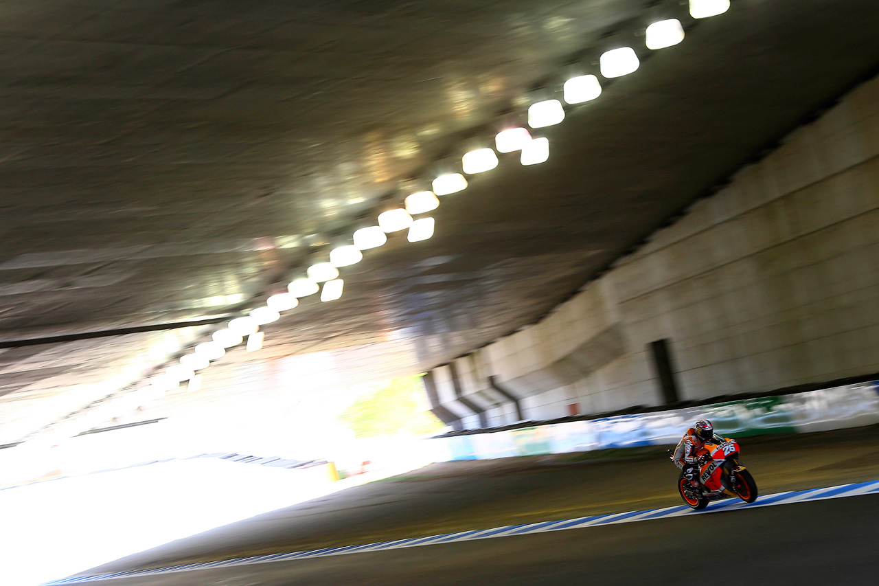 Viajamos ahora a la casa de Honda. Allí, encontramos este tramo que se extiende hasta la llegada a la curva rápida; toda esa parte es a la que Dani hace referencia. La curva, en sí, es un giro de derecha de más de 90º que se toma a unos 80 km/h tras una frenada muy fuerte. Seguidamente, se entra en el túnel acelerando y metiendo marchas hasta 4ª, ya para llegar a la curva 6 del circuito.