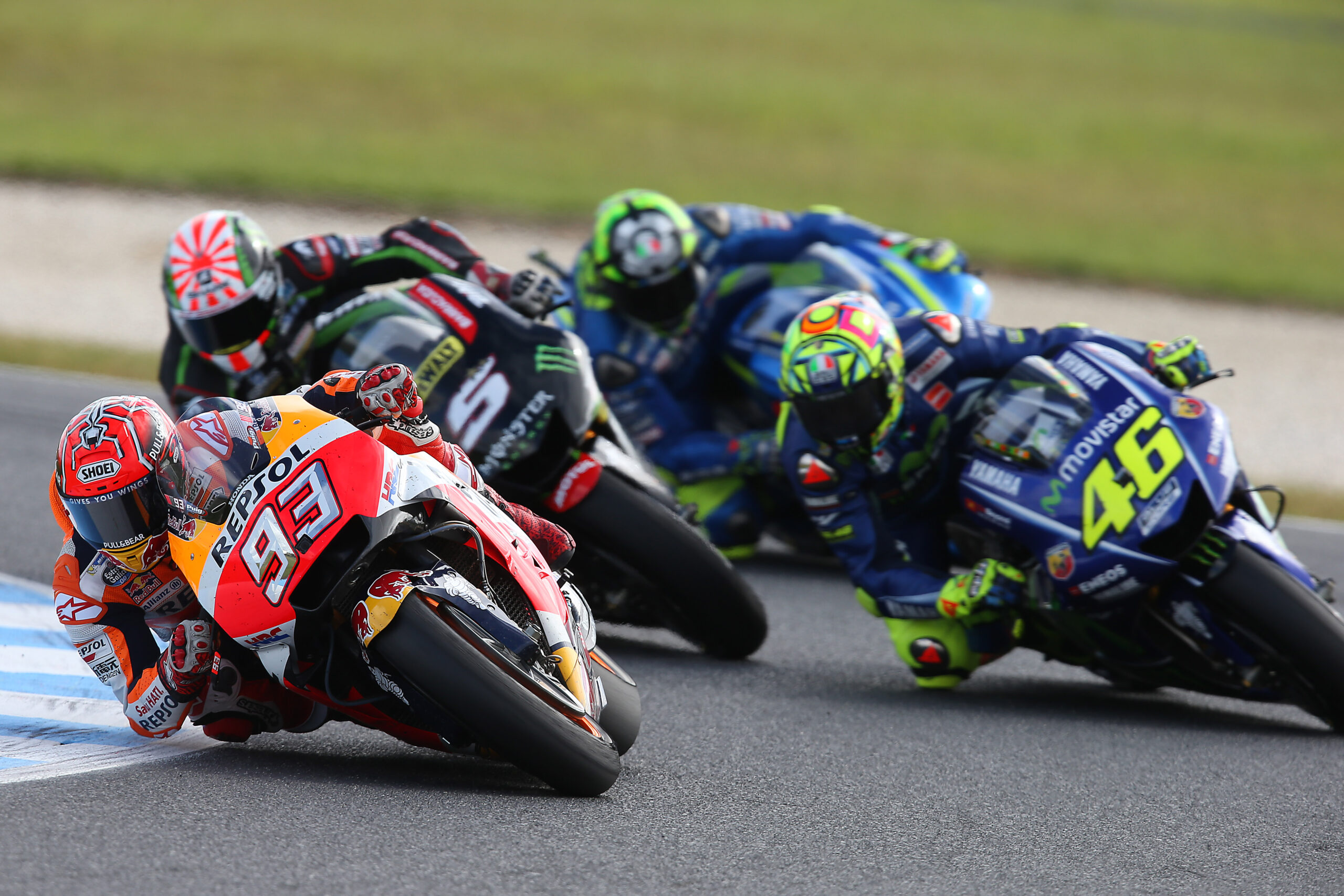 Como olvidar una carrera cuyo recuerdo es ya sinónimo de “épica”. Durante la gira asiática de 2017, Marc estaba liderando el Mundial, compitiendo por el título con Andrea Dovizioso. Nuestro piloto salía desde la pole, pero estaba claro que no iba a ser una carrera fácil. Otros cinco pilotos se juntaron en el grupo de cabeza y ninguno salvo Marc competía por el título, todos querían ganar.