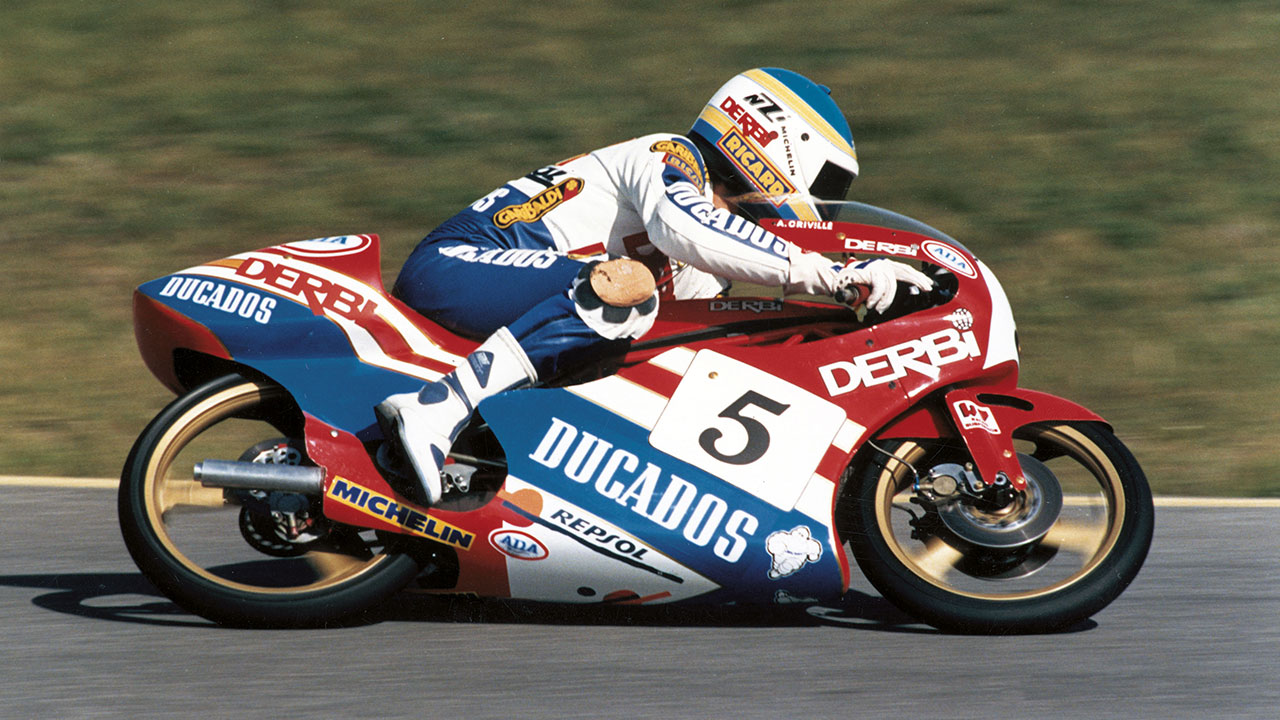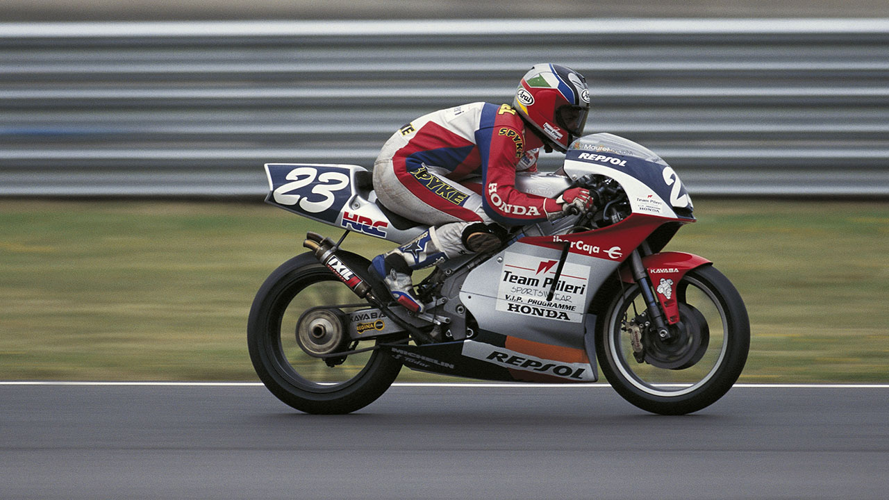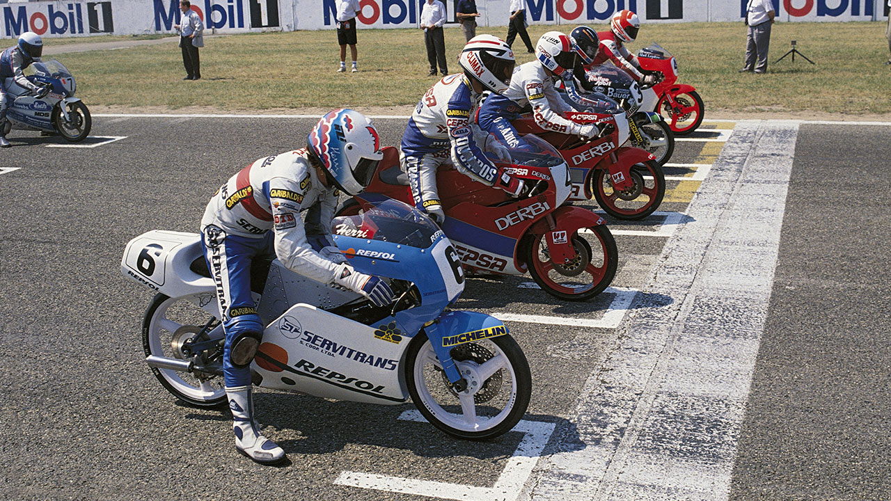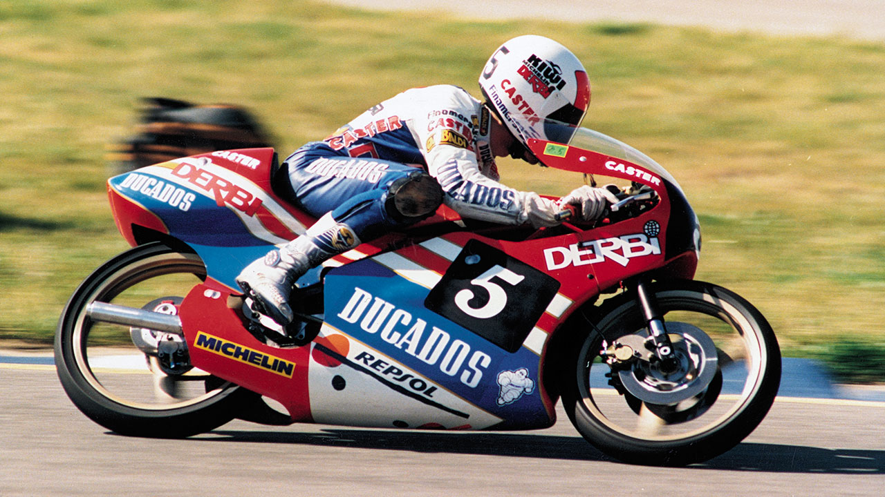 Jorge Martinez Aspar fue uno de los pilotos con patrocinio Repsol que logró hacerse con tres de los seis Mundiales que se disputaron en esta cilindrada. Lo hizo a lomos de la Derbi GP 80, una máquina que evolucionó Paco Tombas, quien en su día había preparado las motos de Ángel Nieto en 50 y 125cc.