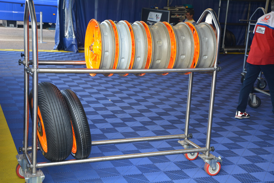 En MotoGP, el magnesio puede encontrarse en algunos componentes de los motores, pero, el elemento más común y vistoso son sin duda las llantas. La diferencia de peso entre un juego de llantas fabricadas con aluminio y otro de magnesio forjado es significativa, pesando la pareja 7,4 Kg, prácticamente la mitad que las de fundición de aluminio.