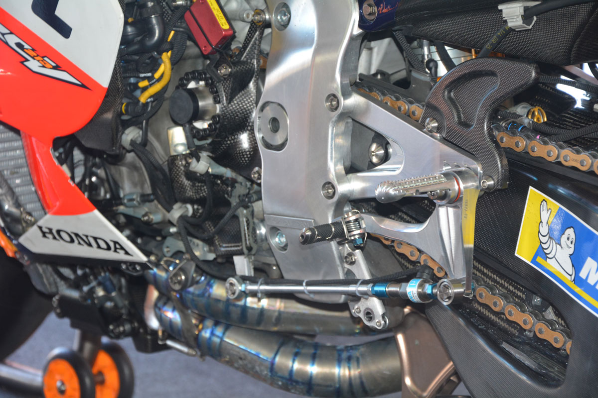 Aunque estos materiales están limitados por reglamento en MotoGP, su uso en competición es realmente clave para lograr el máximo rendimiento de la Honda RC213V. Es gracias a la ligereza y dureza del titanio y el magnesio que nuestros pilotos pueden lograr romper sus marcas una y otra vez en lo circuitos del mundial.