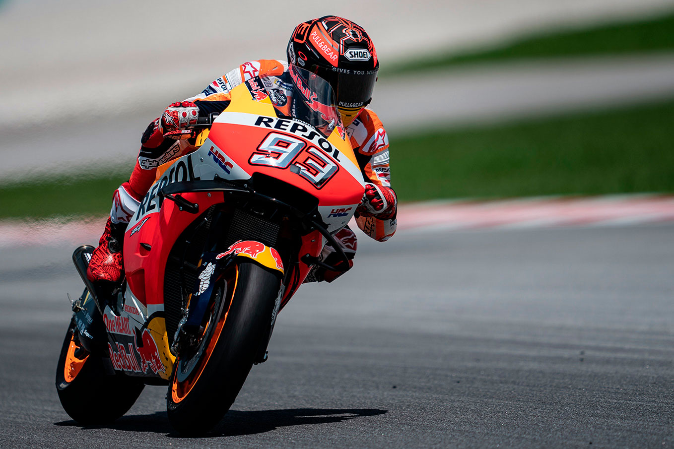 La primera jornada de entrenamientos oficiales en Malasia ha empezado en condiciones de seco, y con Marc Márquez y el equipo Repsol Honda impacientes por iniciar el trabajo en el Sepang International Circuit. Las buenas condiciones de la pista han permitido a Márquez probar nuevas piezas y modificaciones en su Honda RC213V 2019 y valorar el estado de su hombro izquierdo.
