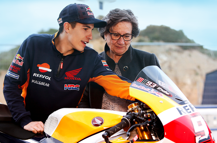 El miércoles anterior a la carrera, Márquez volvió a encontrarse con la señora Paca, una dama a la que sorprendió con una cámara oculta el año anterior por las calles de su pueblo, Villamartín, y con la que protagonizó un cómico encuentro. Marc y Paca se citaron de nuevo en Jerez y regalaron una entrañable entrevista que terminó con la invitada sobre la Honda y el piloto de Cervera, enseñándole la posición en una recta.