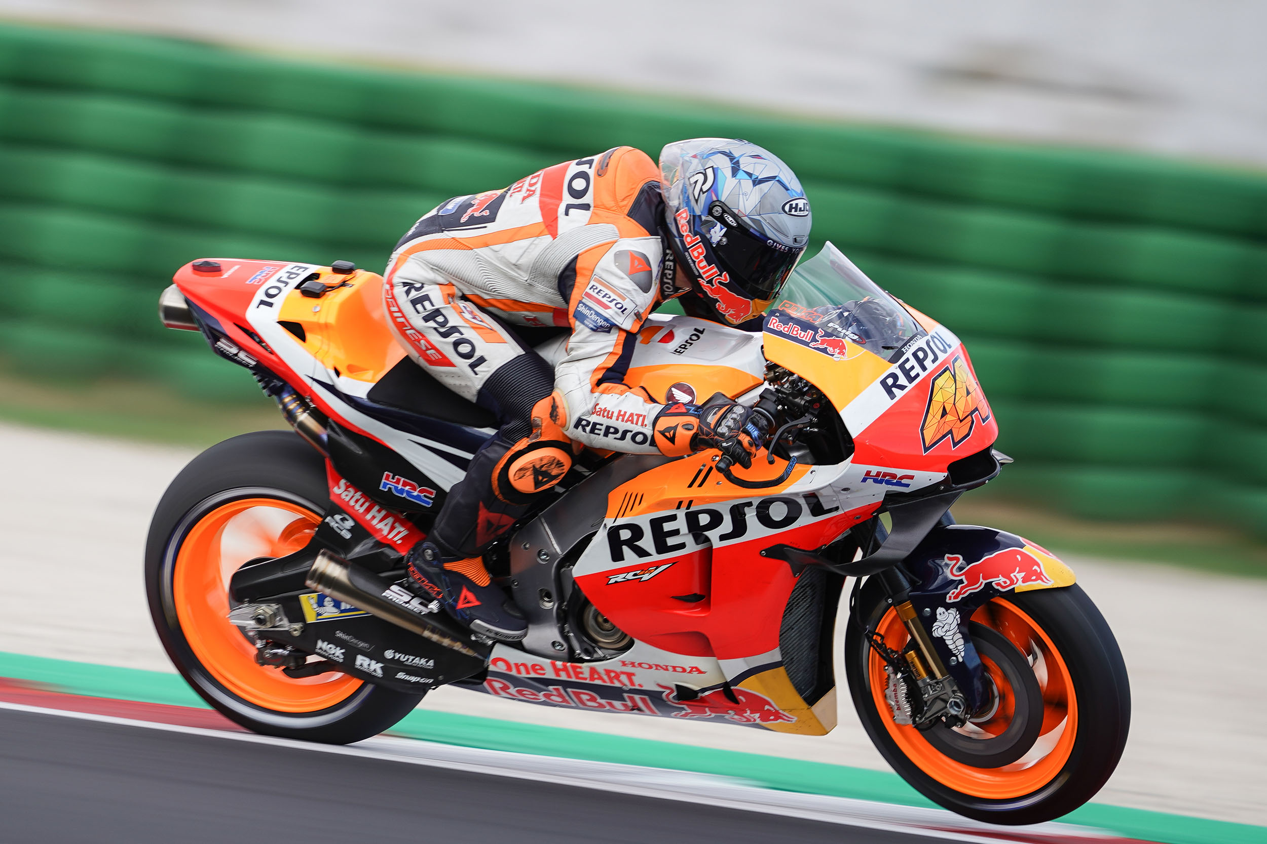 Espargaró ha pasado el primer día de test trabajando en su estilo de pilotaje y probando varias piezas para la Honda RC213V. El piloto del equipo Repsol Honda ha dado un total de 65 vueltas, registrando un mejor tiempo de 1 minuto, 31 segundos y 631 milésimas que le ha permitido colocarse segundo en la general y a 0.107 milésimas detrás de Bagnaia, que ha liderado la jornada de entrenamientos. Pol ha sido 0.3 milésimas más rápido que el tiempo que registró en la Q2 del pasado sábado.