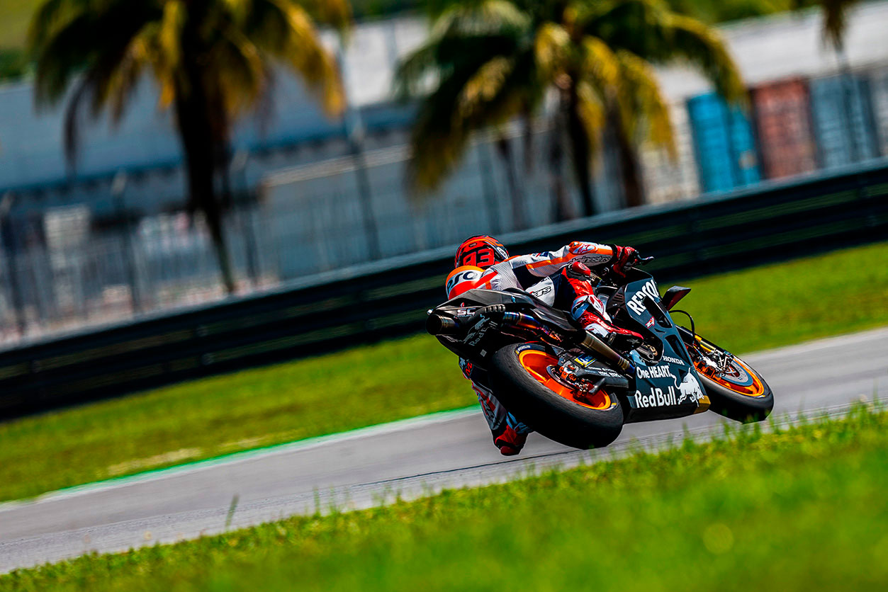 Una pista en unas condiciones casi perfectas ha recibido a Marc Márquez y el equipo Repsol Honda para la segunda de las tres jornadas de entrenamientos en el Circuito Internacional de Sepang. Por la mañana, la temperatura del asfalto ya superaba los 40ºC y rápidamente ha aumentado otros veinte grados, aunque el trabajo no ha cesado. El vigente Campeón del Mundo de MotoGP ha vuelto a rodar únicamente durante la primera mitad del día, avanzando en su programa de pruebas y evaluando distintas piezas de su Honda RC213V de 2019.