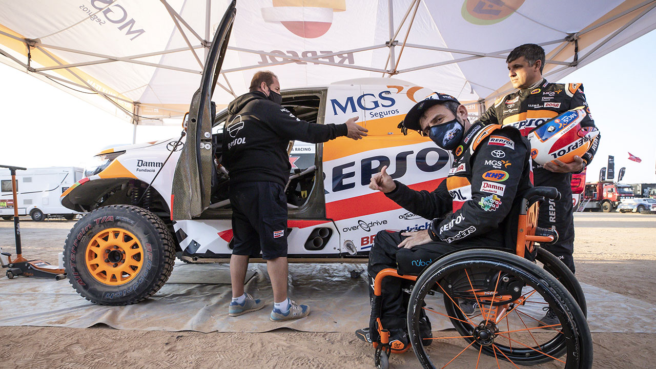 El piloto de Oliana que cuenta con el apoyo de Repsol, MGS Seguros, KH-7 y Toyota España, afirma que “ya hemos encontrado una buena puesta a punto del Hilux, lo tenemos más por mano y lo entendemos mejor para sacar el mejor provecho cuando las cosas se pongan más complicadas”.