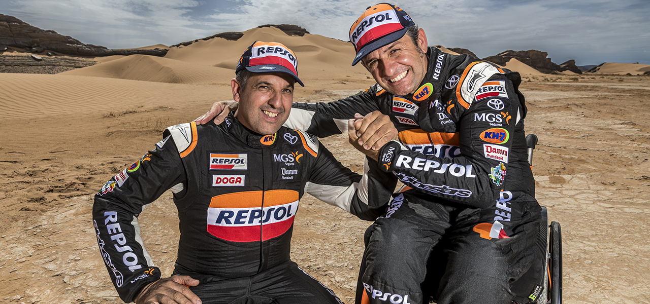 Los resultados del Repsol Toyota Rally Team en las dos pruebas que ha disputado este otoño con miras a la cita de Arabia Saudí han corroborado las buenas impresiones iniciales. En el Rally de Marruecos, celebrado a principios de octubre, Esteve y Villalobos concluyeron en una magnífica séptima posición absoluta, su mejor clasificación en una cita del Mundial de Rally-Raid sobre cuatro ruedas. Luego llegó el Andalucía Rally, también del Mundial, con cuatro etapas de altísima exigencia en entornos, además, nada adecuados para los T1 ni para un Esteve que tuvo que multiplicar sus habilidades y la resistencia de sus brazos. A pesar de ello, firmó otro top 10 absoluto en la clasificación final, además del cuarto puesto entre los T1.