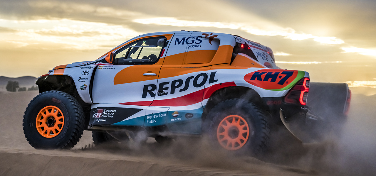 En los entrenamientos realizados en el Erg Chebbi (Marruecos) esta misma semana, Esteve ha podido comprobar el salto adelante que supone para él y el Repsol Toyota Rally Team el Hilux T1+: «Es superior en todas las superficies, pero donde brilla particularmente es en pista dura y en zonas rotas. Esto es, en los mismos caminos donde antes reducíamos el ritmo, ahora avanzamos con la máxima potencia y un nivel de seguridad increíble. El otro aspecto en el que hemos visto una mejora decisiva es en materia de pinchazos. El mayor diámetro de las ruedas de este coche permite superar zonas repletas de piedras con un riesgo muy bajo de pinchar».