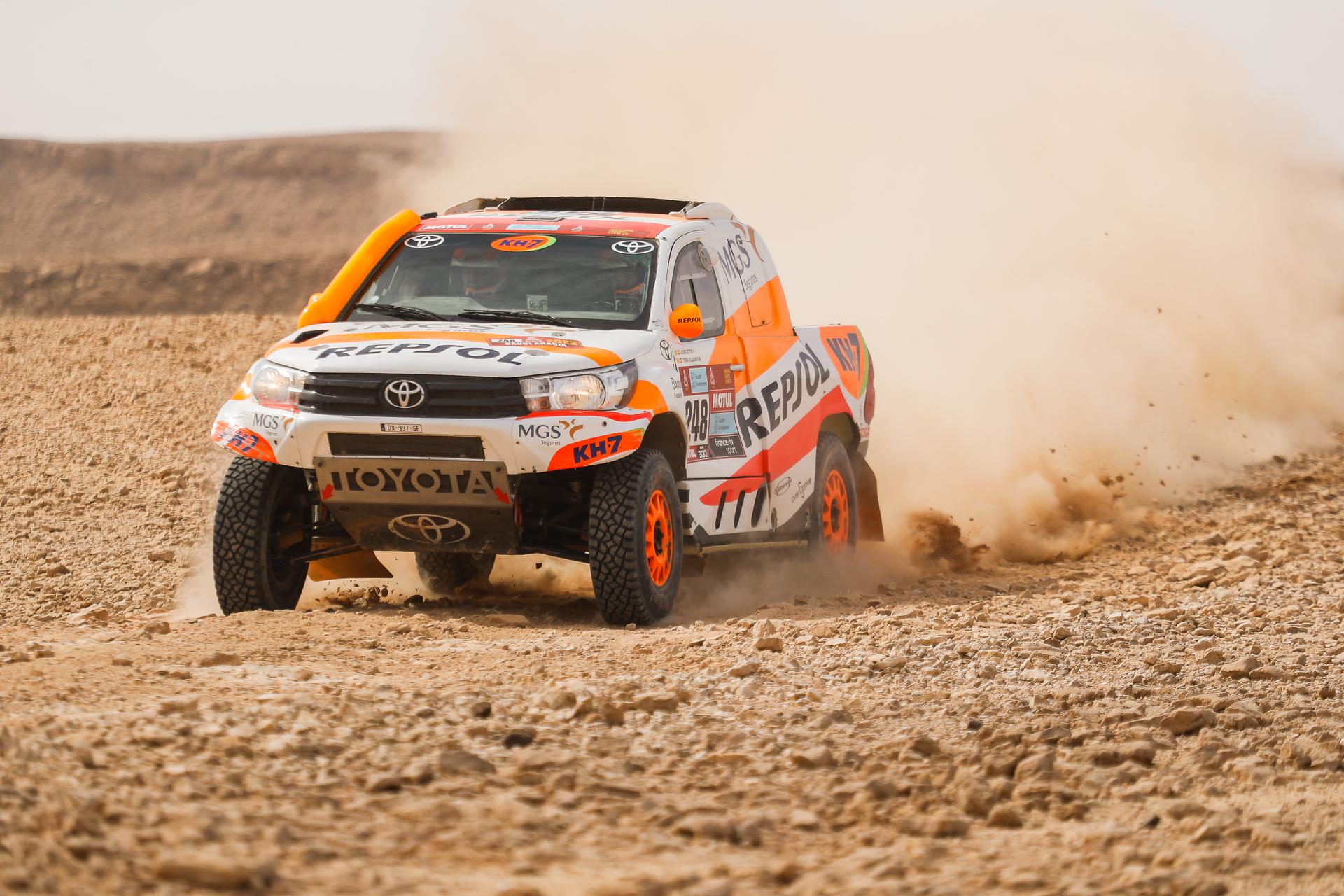 En la sexta etapa del Dakar 2022, el Repsol Rally Team ha tenido que sufrir con el polvo en suspensión de varios camiones que salían delante de ellos, arriesgando para adelantarles.