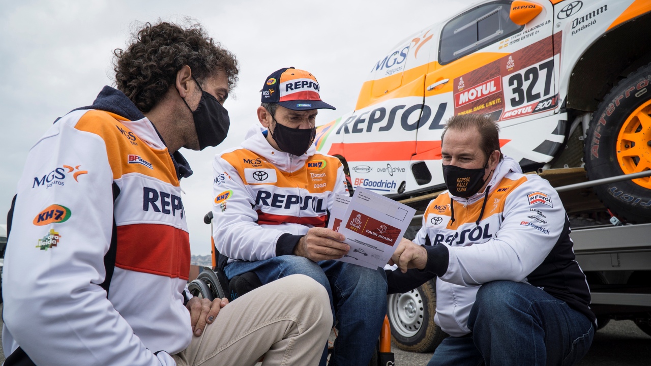 El Toyota Hilux del Repsol Rally Team llegaba el martes imponente a Marsella, acompañado de un camión-taller T5, acondicionado también para convertirse en la vivienda de Isidre Esteve durante las dos intensas semanas de carrera que le aguardan en la península arábiga. En su sexta participación en coches y primera con el prototipo de Overdrive, el de Oliana estará acompañado por su inseparable copiloto Txema Villalobos, su pareja y preparadora física Lidia Guerrero, y sus tres mecánicos de confianza: David Pigem, Carles Méndez y Albert Soler, que también se trasladarán en un Hilux.