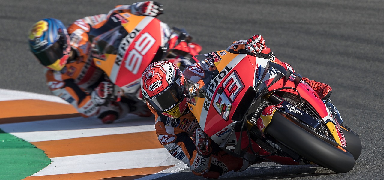 Pedrosa logra en Valencia su segundo triunfo de la temporada y Márquez, tras una espectacular ‘salvada’, celebra su sexto Mundial con un nuevo podio.