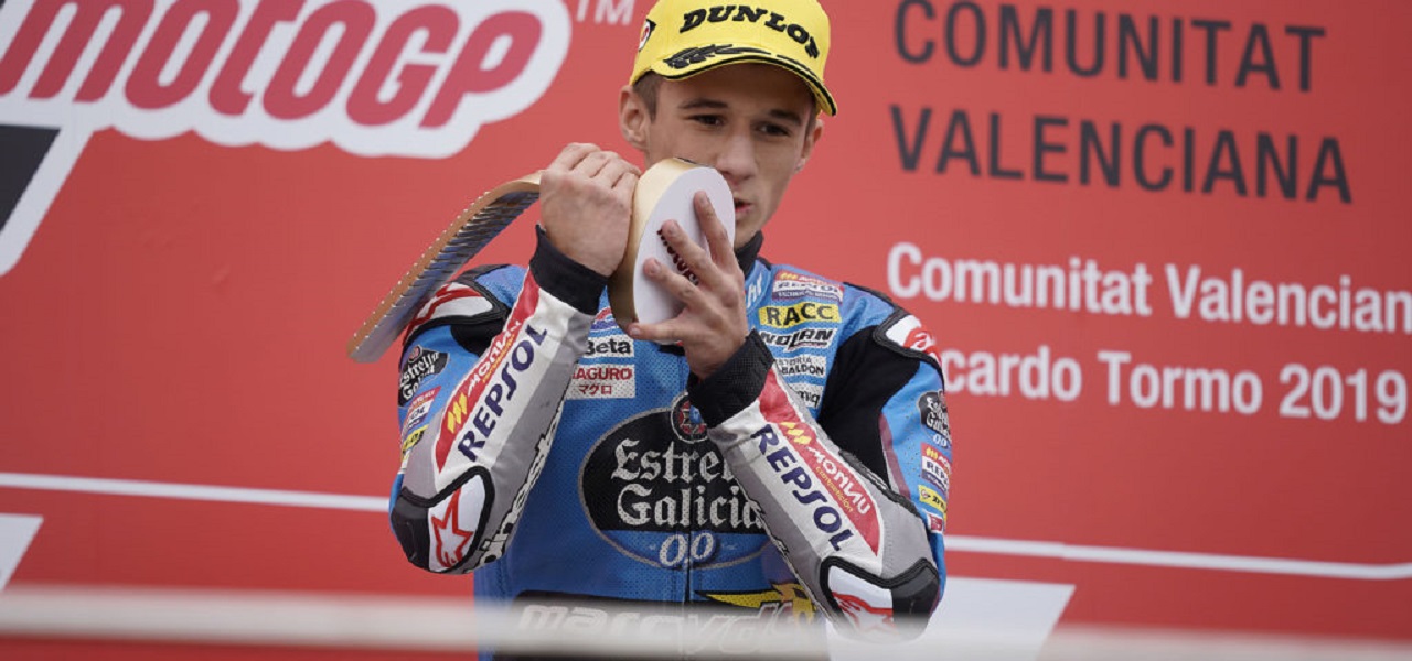El piloto Repsol logra el triunfo en un ajustado final de carrera. Su compañero Alonso López no ha terminado tras verse implicado en una caída múltiple