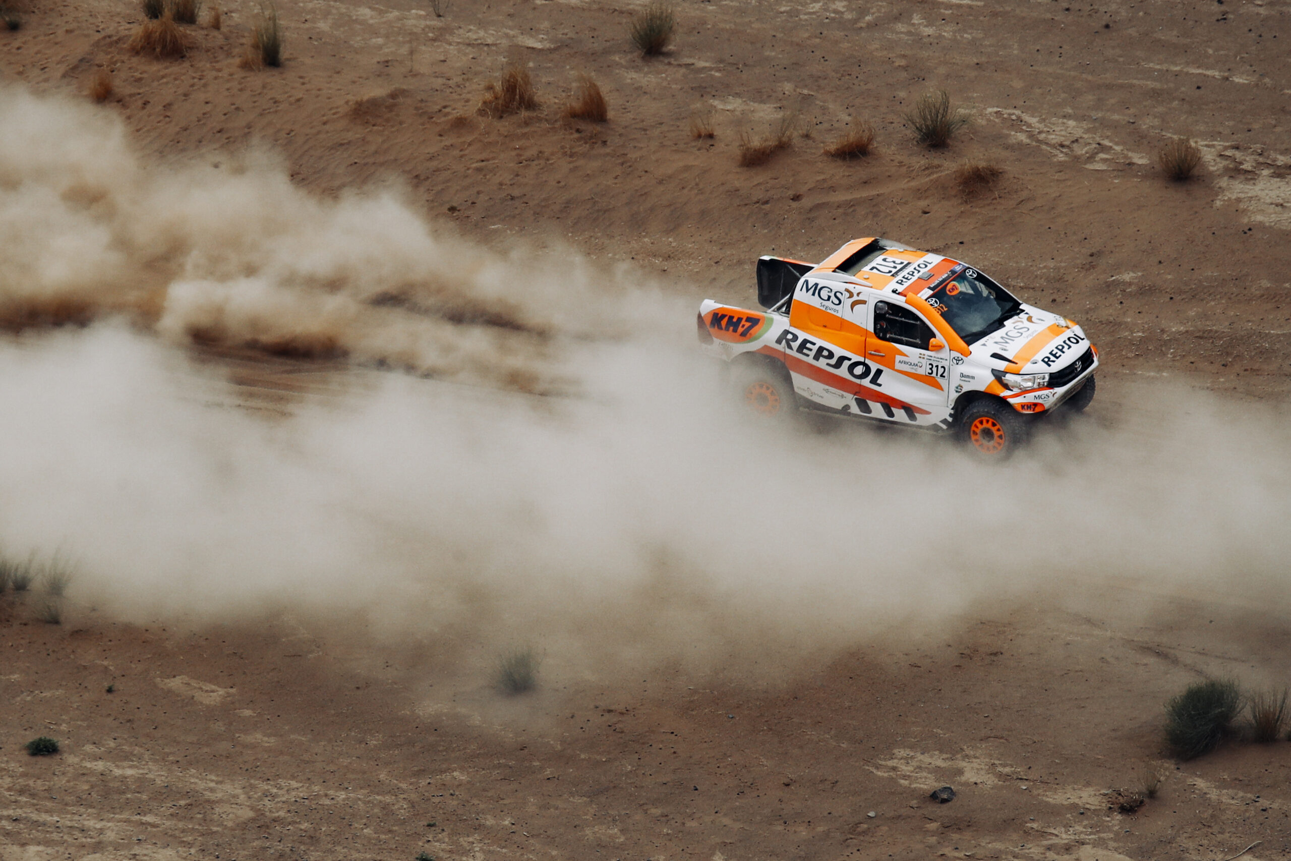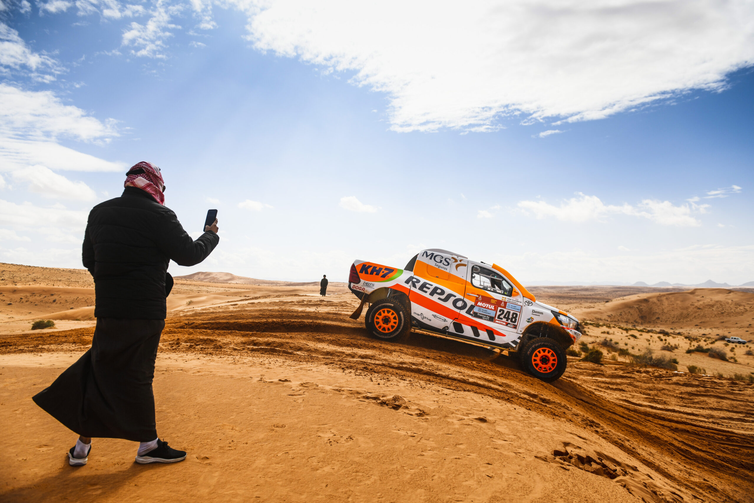 El piloto del Repsol Rally Team tuvo que gestionar el polvo en suspensión y adelantar a un buen puñado de rivales en las primeras dunas que pisa desde el Dakar del pasado enero.