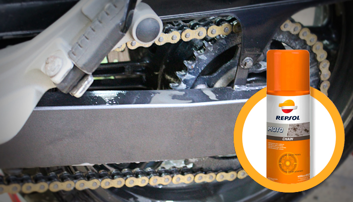 Engrase. Hemos limpiado toda la moto, incluida la cadena, una parte que después del “ataque” con agua a presión queda bastante limpia. Pero cuidado, es imprescindible engrasarla para el correcto funcionamiento y no ver acortada su vida útil. Para ello podemos utilizar un producto específico que la mantendrá perfectamente lubricada.