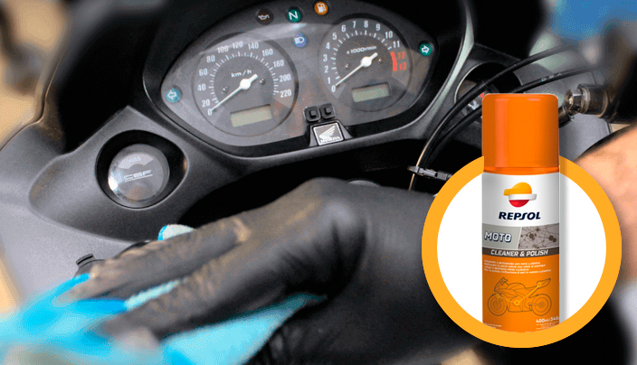 Acabado. Existen productos de acabado como lacas o ceras para darle brillo y protección. Su aplicación es opcional pero el resultado suele ser más que gratificante. Si no te importa ponerle algo más de tiempo e invertir en alguno de estos productos, desde el Box Repsol te recomendamos este paso. Tu moto parecerá recién comprada.