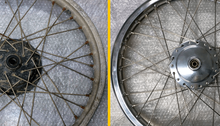 ¿El óxido aún persiste en algunas partes de tu moto?, quizás ha llegado el momento de tomar medidas más drásticas, pero no te preocupes, todo tiene solución. Probablemente este proceso sea más costoso, puedes utilizar un cepillo de púas de acero para rascar la superficie oxidada lo más suave posible para no deteriorarla. Si hacerlo a mano es muy laborioso siempre puedes acoplar a un taladro cepillos de acero y posteriormente de pulido para hacerlo mucho más rápido.