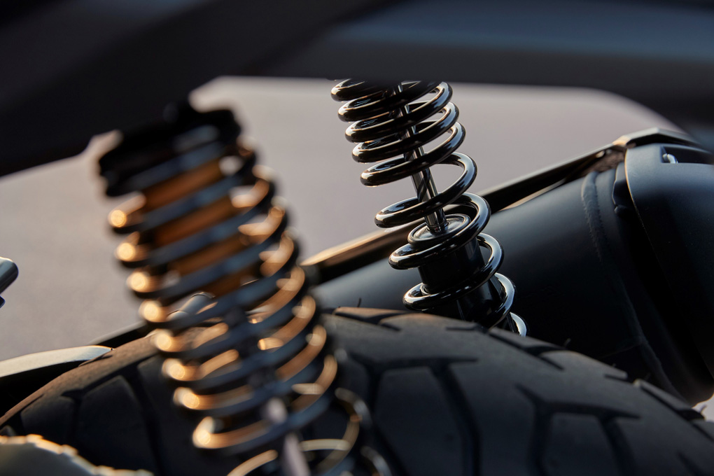 Los pistones estaban unidos por largas bielas, al estilo de una locomotora de vapor. Esta primera moto no disponía de volante motor —esa función la asumía la rueda trasera— y la gasolina se suministraba mediante un carburador de superficie. El motor contaba con láminas de admisión automáticas y las dos de escape estaban separadas por largas bielas y una leva en la rueda trasera. El guardabarros servía como depósito de agua para refrigerar el motor y en uno de los tubos del chasis se alojaba el depósito de aceite.