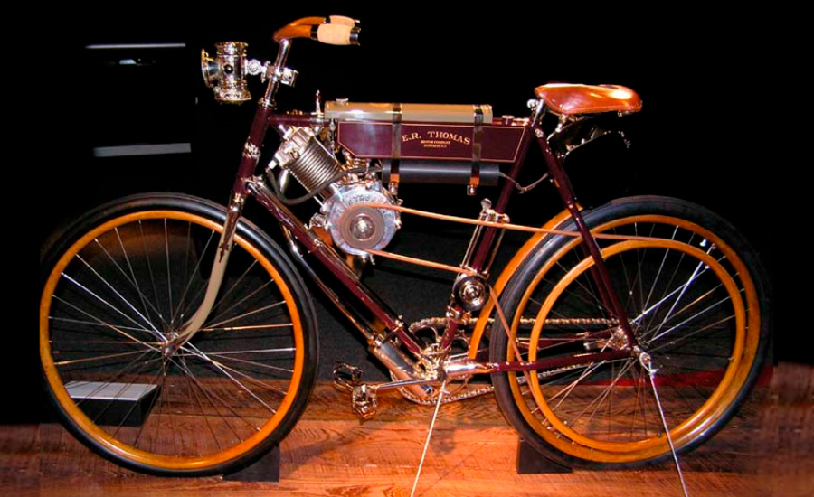 En 1896 surgió en Estados Unidos la Geneva, una bicicleta motorizada con un propulsor de 0’5 CV de potencia y una velocidad de 26 km/h. Al otro lado del Atlántico también aparecen en 1900 la Orient –tres ruedas, 2’5 CV y 40 km/h– y la Thomas –dos ruedas, 1’8 CV y 40 km/h–.