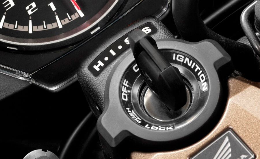 3- Debes conectar la llave, el cortacorriente del manillar, y engranar el punto muerto –consulta el testigo para asegurarte-. Coordínate con la persona que va a empujar la moto contigo.