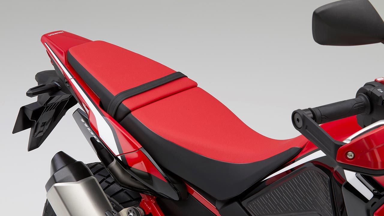 Los colores disponibles para la Honda África Twin 2021 son el Negro mate ballistic, el rojo Grand Prix, y el nuevo blanco perla glare tricolor.