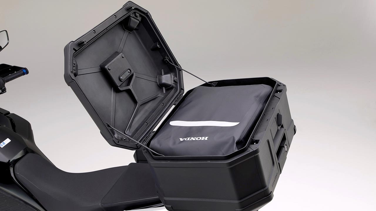 En opción, podremos montar protecciones para el motor y radiador, maletas traseras y laterales, pantallas touring y puños calefactados, para protegernos del frío, la lluvia y el viento, o faros antiniebla para ver en las peores condiciones.