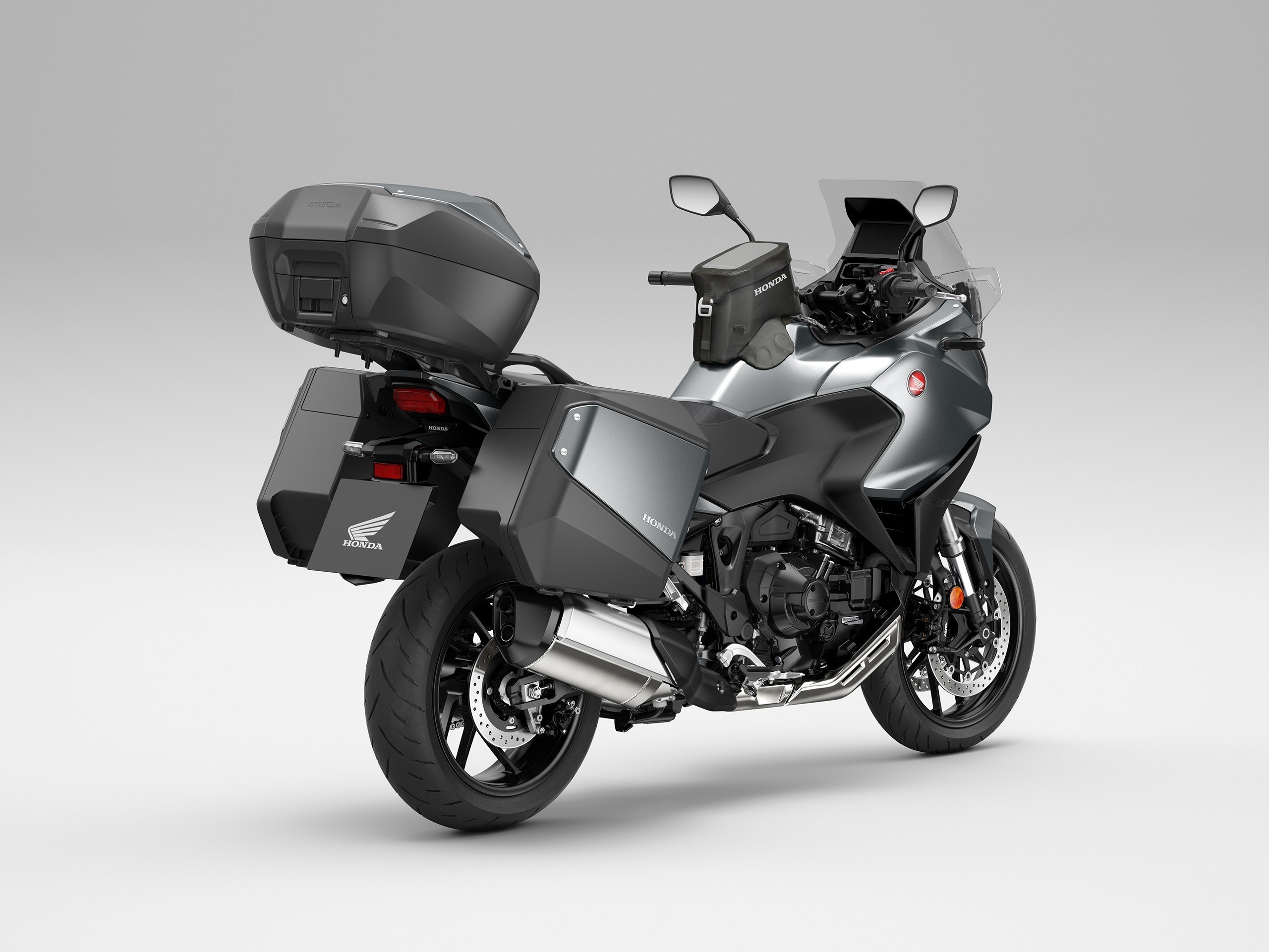 Otros aspectos dignos de mención son el alumbrado “full led”, las tomas USB y ACC, los intermitentes autocancelables y el aviso de frenada de emergencia, que hace parpadear los citados intermitentes en frenadas muy enérgicas Y, por supuesto, la Honda NT100 también está dotada con una electrónica de última generación con tres modos de conducción predeterminados (Urban, Tour y Rain), dos modos “USER” personalizables, control de tracción regulable en tres niveles y sistema “anti caballito” que también se puede ajustar en tres posiciones.
