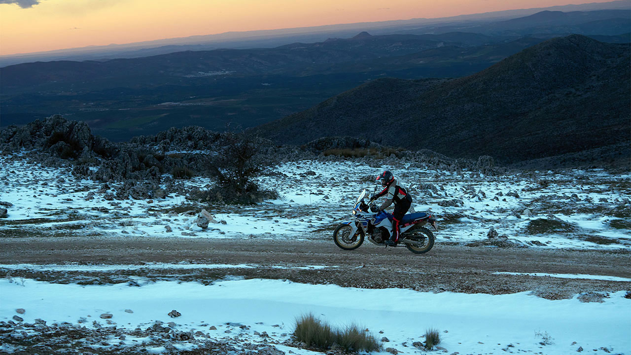 Rodar en estas condiciones es extremadamente complejo y peligroso, sobre todo si no se tienen nociones de pilotaje off-road. Siempre se puede buscar una zona despejada y probar cómo se comporta la montura con algo más de seguridad antes de emprender la marcha. Pero siempre hacerlo a muy poca velocidad.